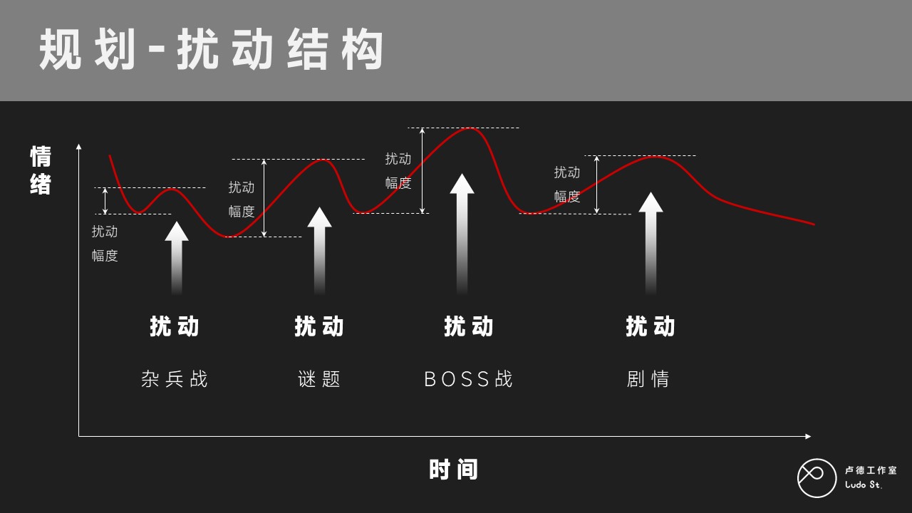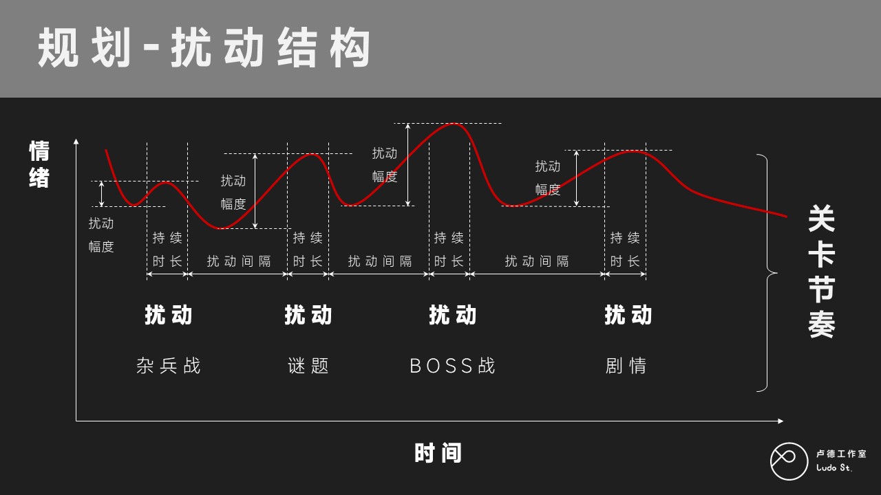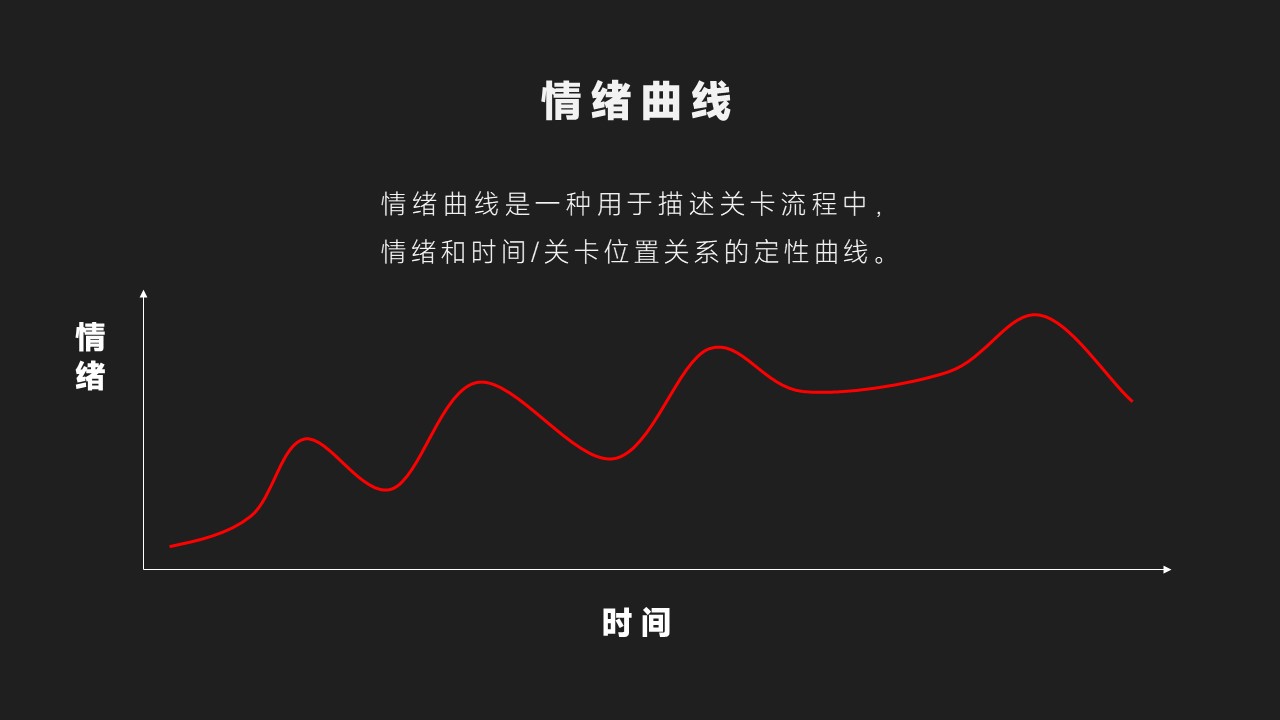 所以情绪曲线就跟人说话一样,不要平平淡淡,一定要跌宕起伏才好。关卡设计也是如此,关卡也一定是跌宕起伏的。