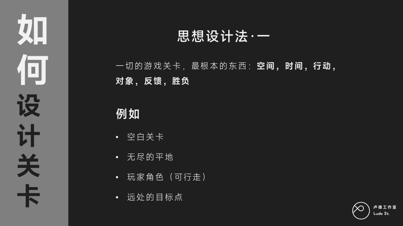 同理,今天让你打怪,明天让你打怪,后天我让你打怪50次,之后再打50次,每天打50次,你会发现这游戏真的很无聊、很痛苦。相信大家应该都经历过这种无聊的痛苦,至少在刷副本、刷经验、刷钱、刷经验、刷钻石的时候一定遇到过,让你每天去刷一遍。这种效果或者说,我们人的体验逻辑实际上就是一个边际递减效应。所以理想实验的第一步是让我们意识到,游戏的最根基状态,我们一切游戏都由这个最基本逻辑开始:克服空间或者时间的尺度,而手段是[走]或者[等]。