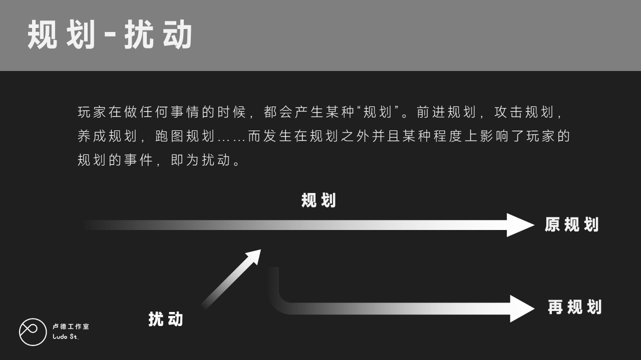 给玩家一定的扰动后,让他通过调动策略技巧和运气重新形成新规划,之后我再在新规划路径上加入一个扰动,他又会再次发现并调整。