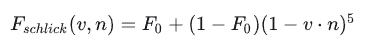 这里的F0是一个反射系数,用于控制菲涅尔反射的强度,v是视角方向,n是表面法线。