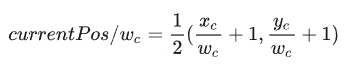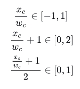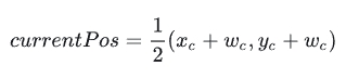 由于我们采样只需要x坐标和y坐标,所以此处只需要观察x坐标和y坐标即可。接着我们将已经缩小一半的xc和yc增加wc的一半,由于它们都有因子1/2,所以可以提出来。